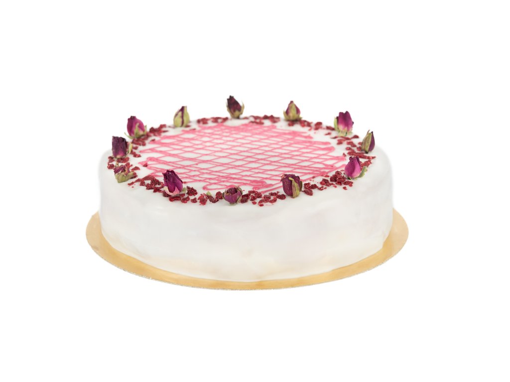 Směs (pšeničná mouka, cukr, sušená vaječná směs (vejce, cukr, sůl), pšeničný škrob, sušené mléko, kypřící prášek (kypící látka E450, E500, ethylvanilín), voda, cukr, směs ovocných dření (jablka, švestky, černý rybíz), fruktózo-glukózový sirup, želírující látka pektin, regulátor kyselosti kyselina citronová, koncentrát z černé mrkve), fondán (cukr, glukózový sirup, voda, E 330), aroma punčové 3,9%, tuzemák 37,5% obj., slunečnicový olej, šlehací pasta (voda, cukr, emulgátor E471, pomocná látka E1520, emulgátor E475, pomocná látka E470a), dekorace malina (glukózový sirup, cukr, maliny 25%, zahušťovadlo alginát sodný E401), poleva (cukr, řepkový olej, plně ztužený palmový tuk, sušená syrovátka, sušené mléko odstředěné, sušené mléko plnotučné, sušený koncentrát (ředkvička, jablko, černý rybíz), emulgátor: lecitiny, aromata, barvivo karmín), dekorace květy (okvětní lístky chrpy, měsíčku a růží bez pesticidů, přísad a barviv)