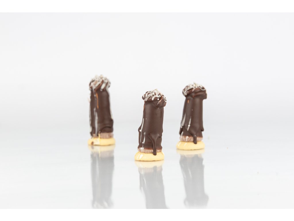 Rostlinný margarin (rostlinné tuky a oleje neztužené (kokos, řepka, palma, slunečnice v různém poměru) kokosový tuk plně ztužený, voda, emulgátory E471, E475, jedlá sůl, regulátor kyselosti E330, aroma, barvivo E160a), směs (cukr, kakaový prášek se sníženým obsahem tuku, sójová mouka, palmový tuk sušený (palmový olej, glukózový sirup, mléčná bílkovina, modifikovaný škrob E1414), voda, tmavá poleva (cukr, plně ztužený palmojádrový tuk, sušená syrovátka, kakaový prášek se sníženým obsahem tuku 6,5 %, sušené mléko, emulgátory E322-sojový lecitin, E476, aroma), dětský piškot (slazená vaječná melanž, pšeničná mouka), poleva bílá (cukr, neztužený palmový tuk RSPO, neztužený kokosový olej, laktóza, sušená syrovátka, emulgátory sójový lecitin E322, E492, aroma vanilka), cukr, rostlinný tuk palmový, dekorace (cukr, škrob (pšenice, kukuřice, bramborový rýže), mouka (pšenice, rýže), rostlinný olej (slunečnicový, kokosový, řepkový), glukózový sirup, glukóza, invertní cukr, sušené mléko, kakaové máslo, kakaová hmota, barvivo E170, E172, E173, E174, aroma, přírodní vanilkové aroma, leštidlo E901, E903, E904, zahušťovadlo, E406, E414, emulgátor sójový lecithin, E473, želatina (hovězí), regulátor kyselosti E330, sůl), tuzemák 37,5% obj. Výrobek může obsahovat stopy: podzemnice, skořápkových plodů, sezamu, oxidu siřičitého, siřičitanů. |