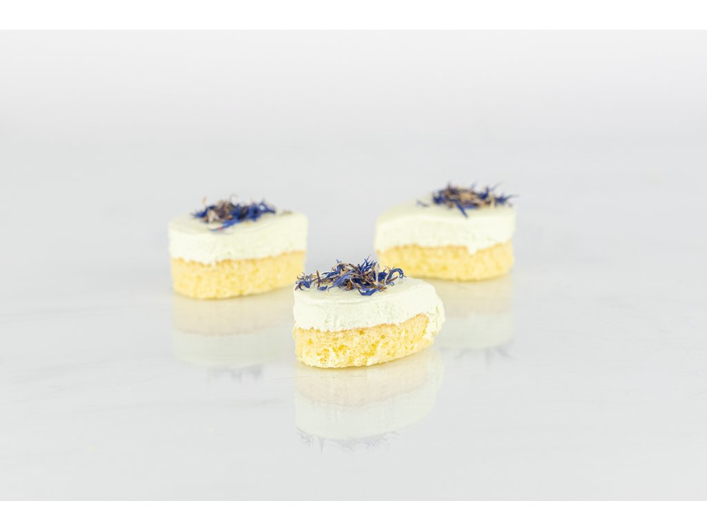 Rostlinný krém (voda, plně ztužené rostlinné tuky (palmojádrový) a oleje (slunečnicový), cukr, stabilizátory E420ii, E463, mléčné bílkoviny, emulgátory E472e, E322-slunečnicový lecitin, sůl, aroma, barvivo E160a), voda, želatina (glukózový sirup, voda, cukr, želírující látka E440ii, regulátor kyselosti E330, konzervant E200), piškot světlý (pšeničná mouka, cukr, emulgátor E472b, E477, glukosový sirup, mléko sušené, škrob pšeničný, kypřící látka E450i, E500i, sůl jedlá jodidovaná (sůl jedlá, jodičnan draselný), barvivo E160a(i), zahušťovadlo E415, aroma), směs (cukr, zahušťovadlo (modifikovaný škrob, E401, E516, E450(ii)), želatina, sušený jogurt 7%, kyselina citronová E330, aroma, mořská sůl), pasterovaná vaječná melanž, pasta pistácie (cukr, mandlová pasta, palmový tuk, pistáciová pasta 10%, slunečnicový olej, sůl, aroma, barviva E141, kurkuma, emulgátor E322 sójový lecitin), pšeničná mouka, dekorace květy (okvětní lístky chrpy, měsíčku a růží bez pesticidů, přísad a barviv)